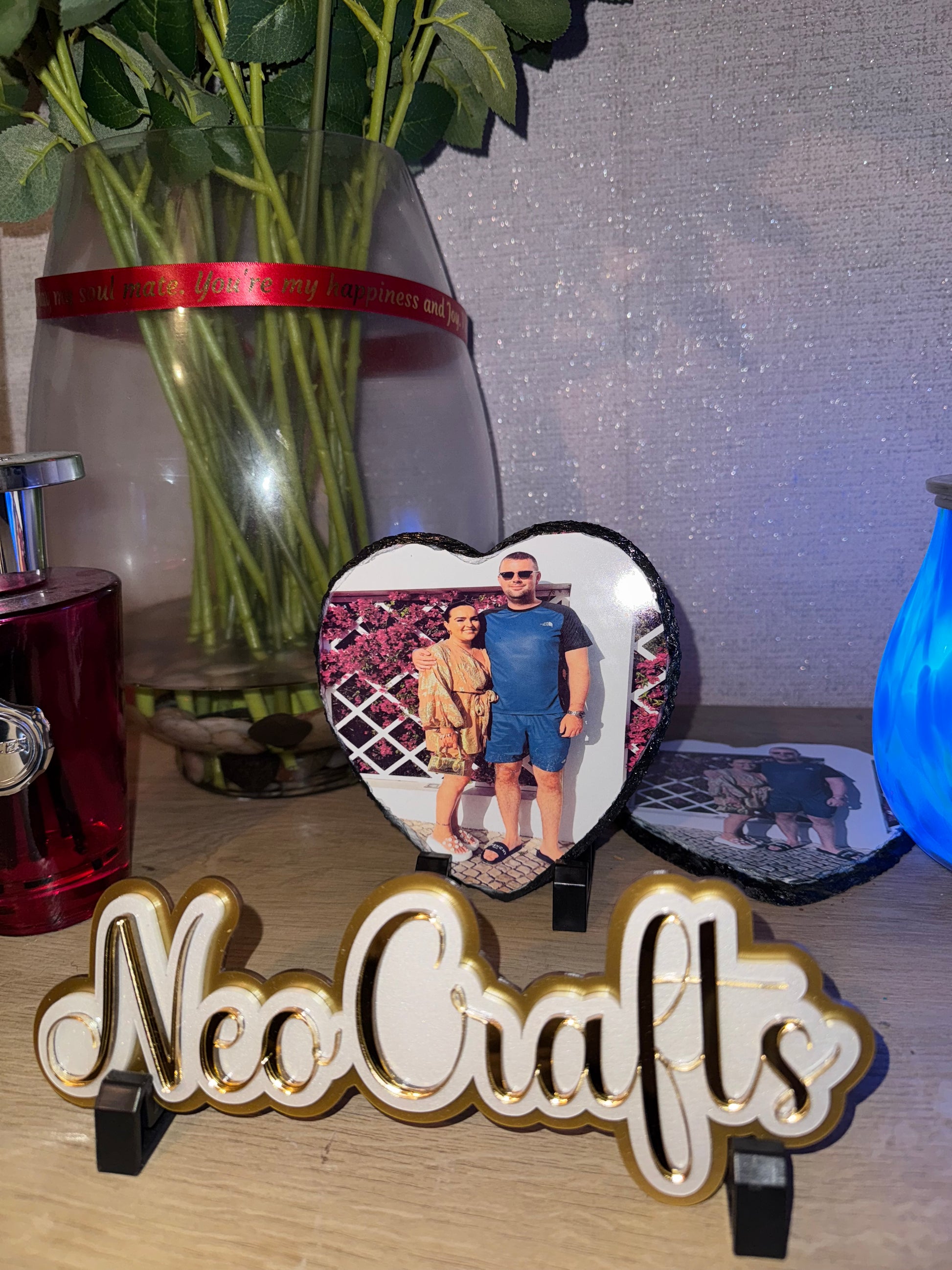 Heart style photo slate made with love Capture and display cherished memories with our Heart-style photo slate. Featuring a unique heart-shaped design, this photo frame is perfect for preserving special moments with loved ones. Its durable slate construction ensures long-lasting quality. Create a thoughtful and timeless gift for anyone special.